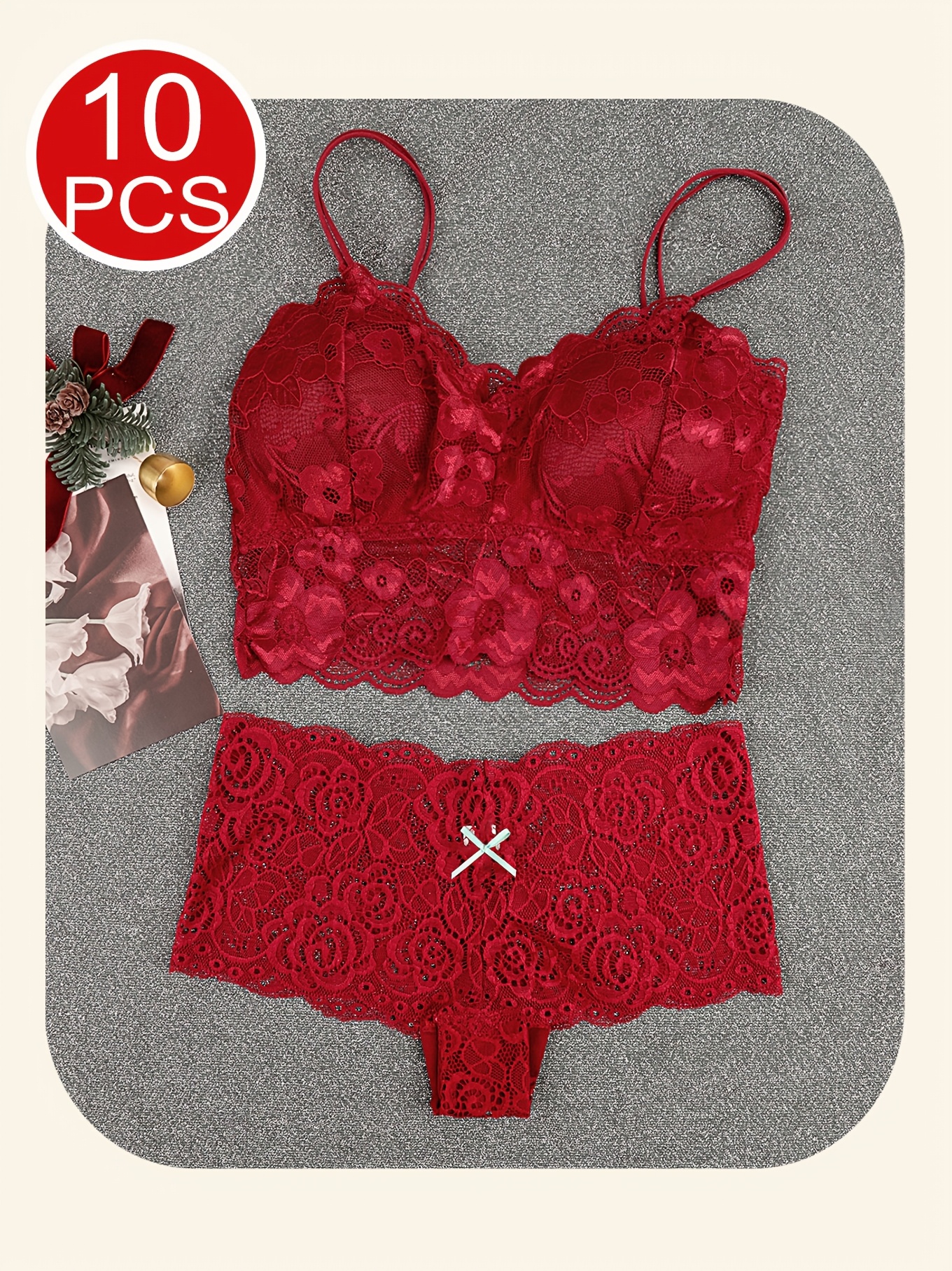 10pcs Of Women'S Underwear And Panties Combination Set Without Steel Rims, Comfortable Daily Exquisite Lace Bra Base, Beautiful Back, Seamless Suspender with Chest Cushion, Detachable Bra, Lace Underwear, Women'S Underwear An