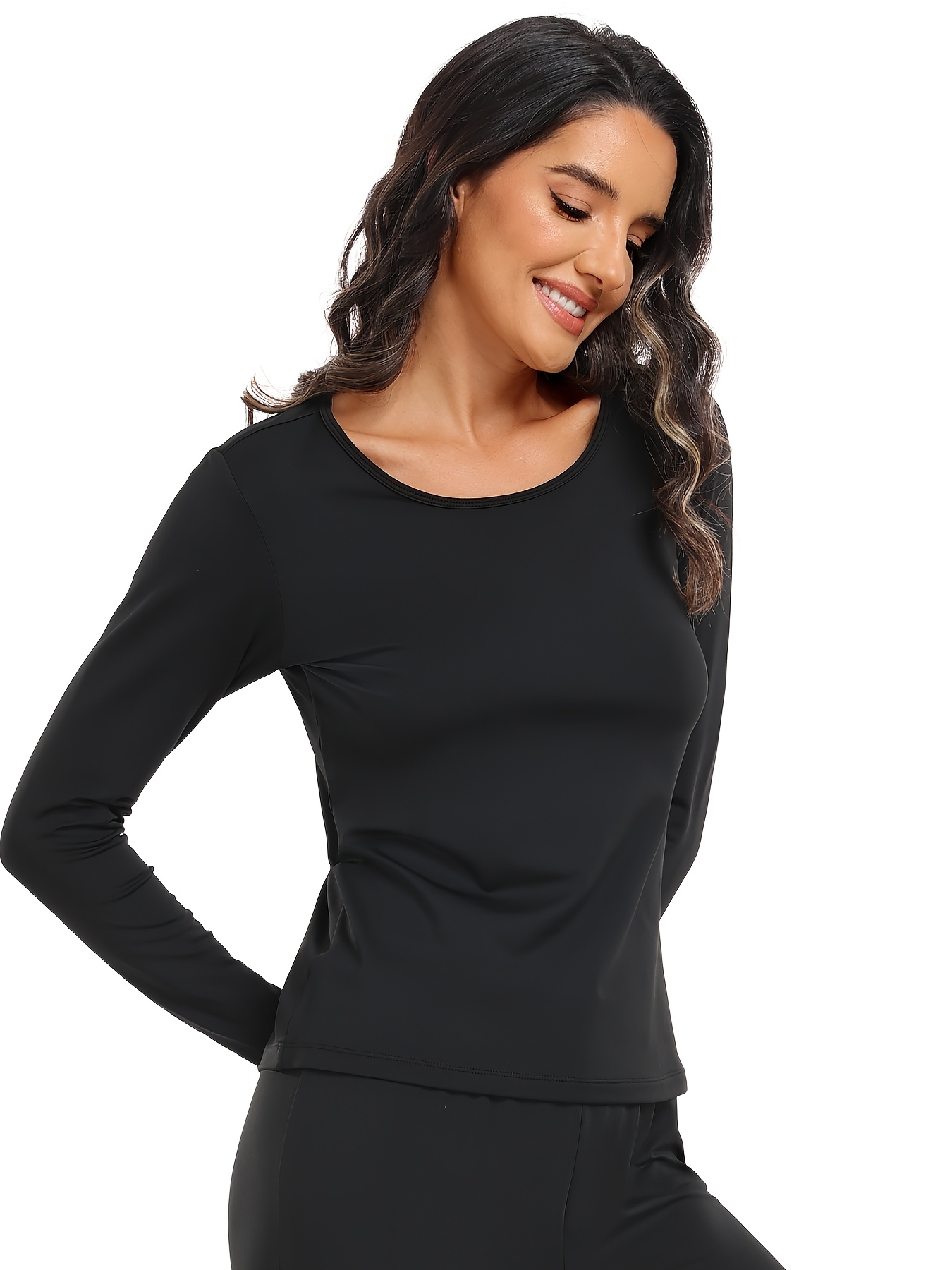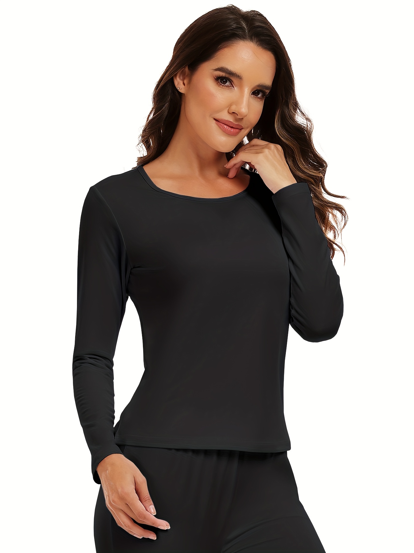 3pcs Women's Thermal Tops Fleece Lined Base Layer Soft Stretchy Long Sleeve Undershirts for Cold Weather, Winter Essentials, Layering Basics, Cozy Loungewear, Minimalist Style, Comfortable Fit, Fleece Undershirt, Women's Fash