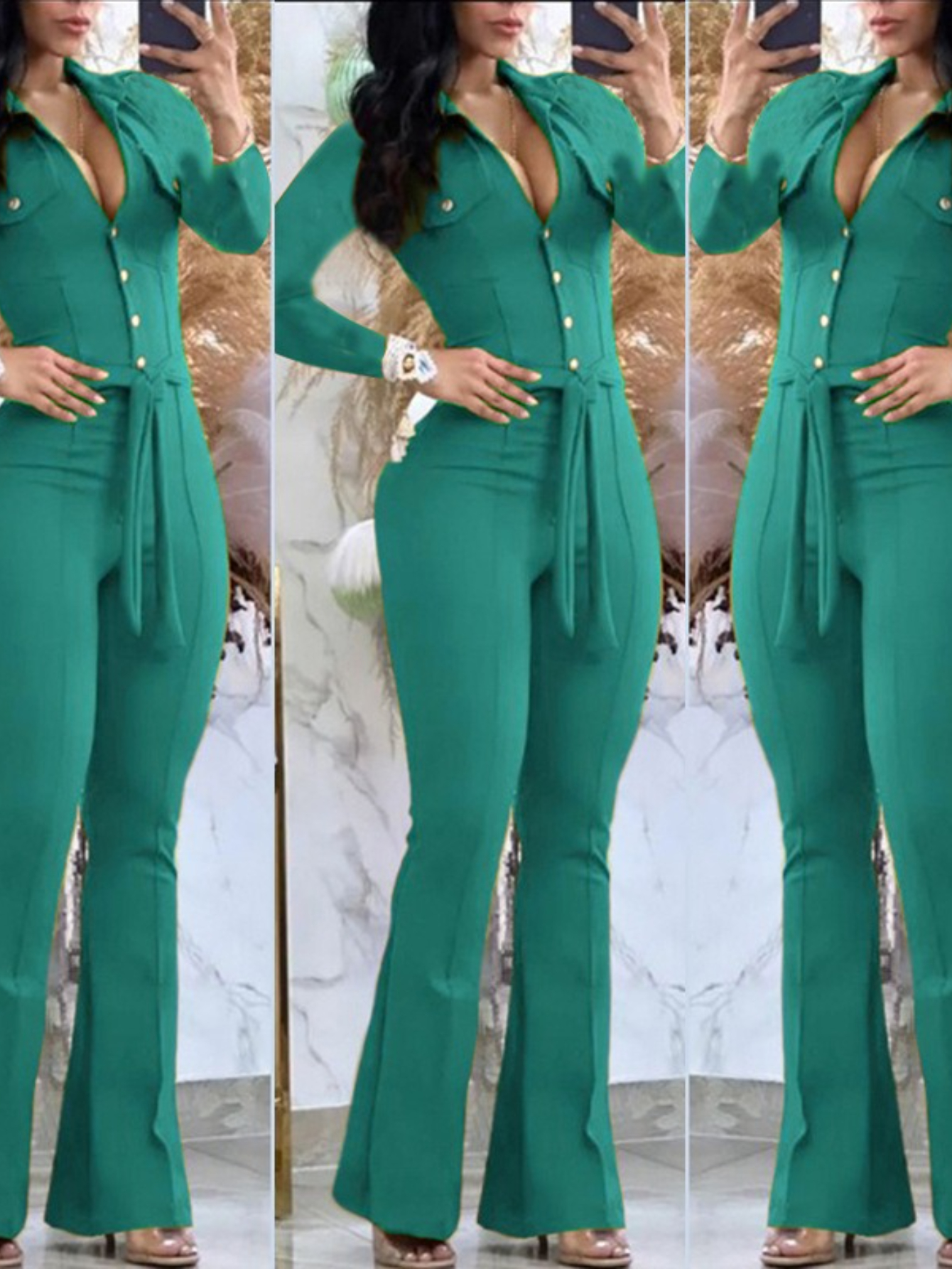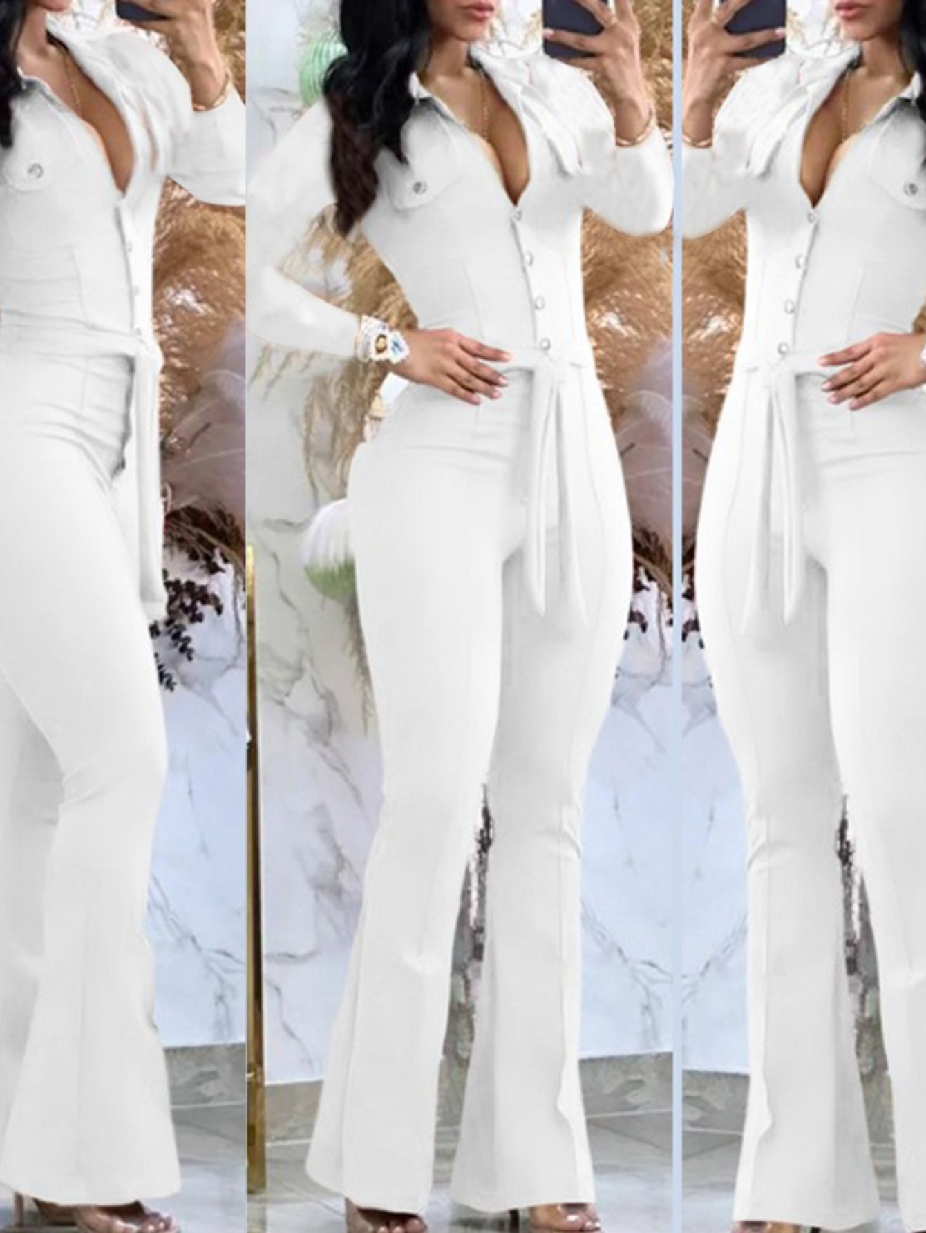 Women'S Casual Button-Front Collar Flared Cargo Jumpsuit with Belt - Vibrant Pink Wide-Leg Pants, Adjustable Waist & Functional Pockets, Cozy Winter Outfit for Everyday & Semi-Formal Wear, Easy-Care Durable Fabric (No Ironing