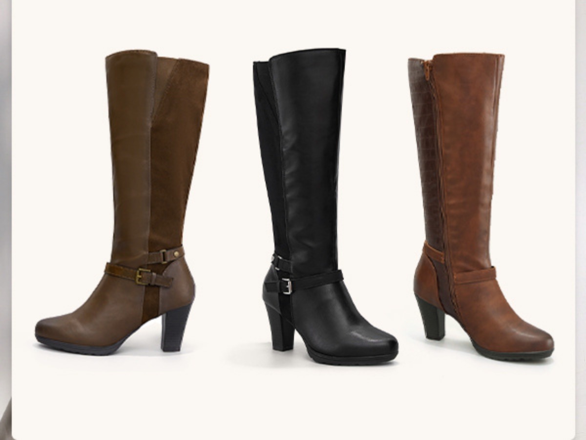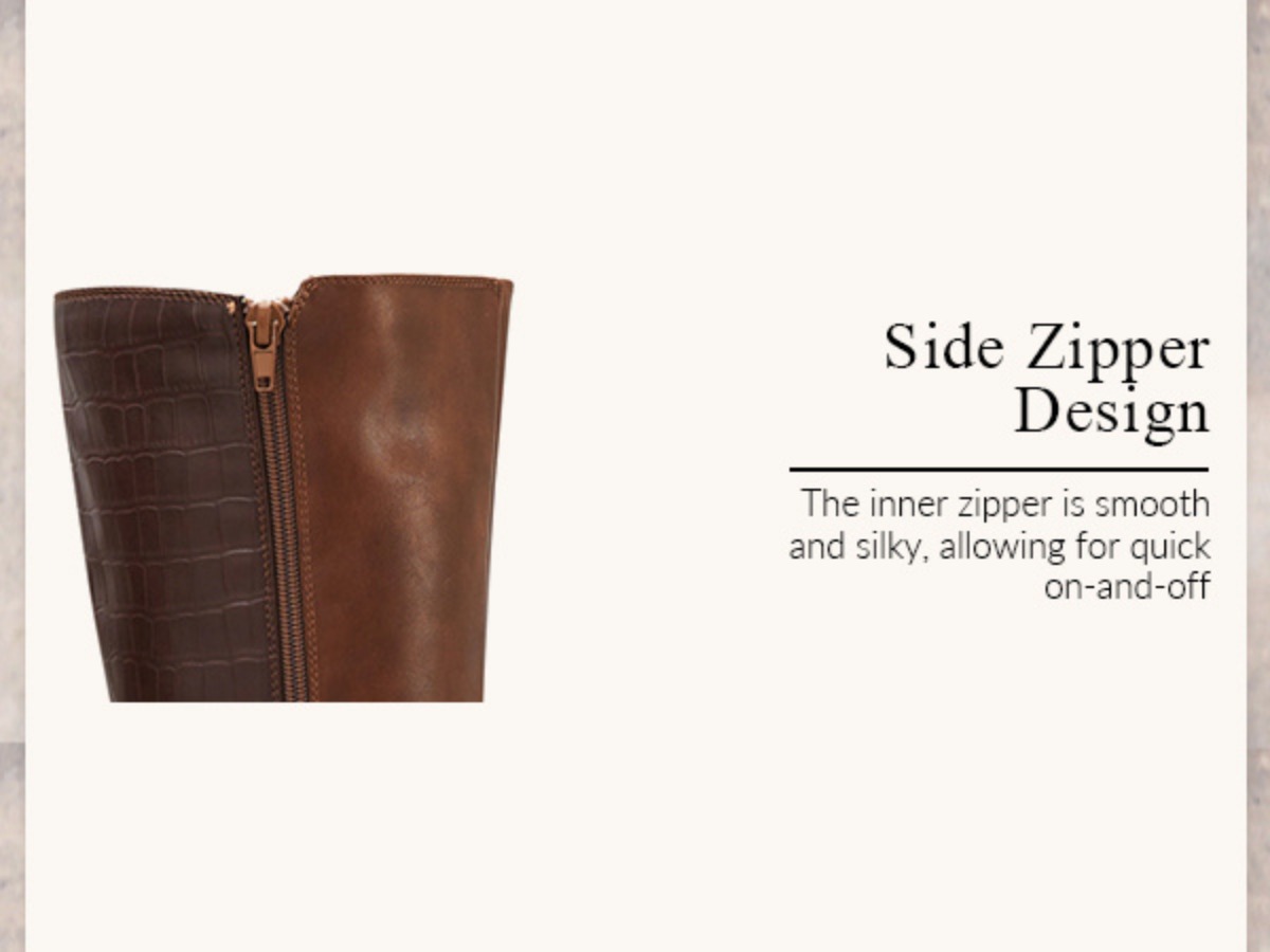 Women's Chunky Heel Knee-High Boots - Full-Length Round Toe PU Dress Boots with Back Zipper Closure, Thick Platform Heel (TPR Sole) & PU - Elegant Brown/ for Dresses, Skirts, Jeans - Versatile Fall Outfit
