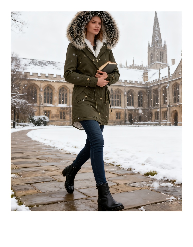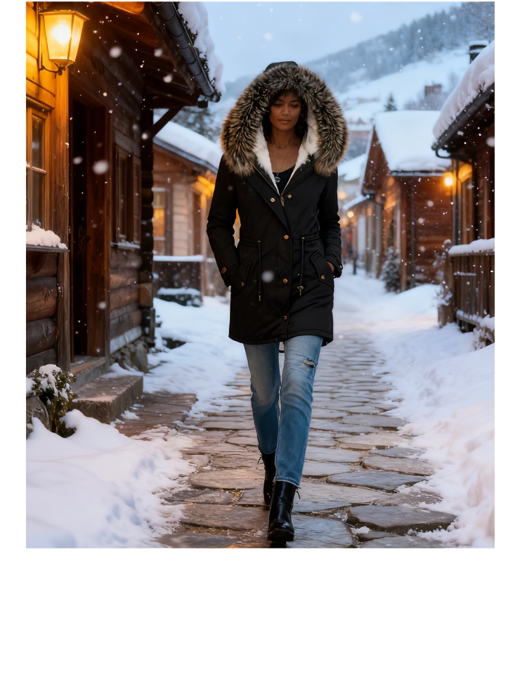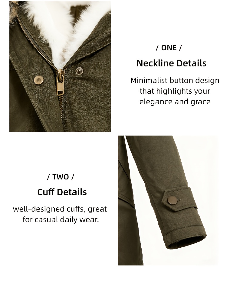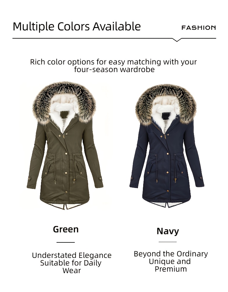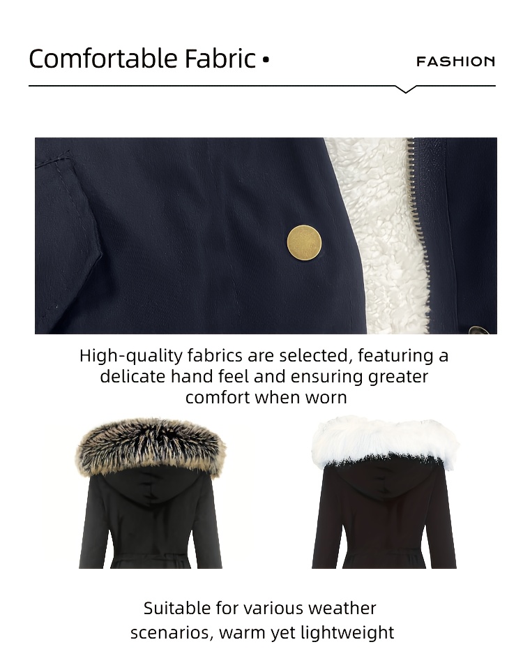 Women'S Thermal Insulated Fleece-Lined Military Parka Coat with Detachable Faux Fur Hood & High Quality High Quality Fabric - Heavy-Duty Winter Jacket, Full-Zip Closure, Golden-Tone Hardware, Utility Pockets, Adjustable Draws